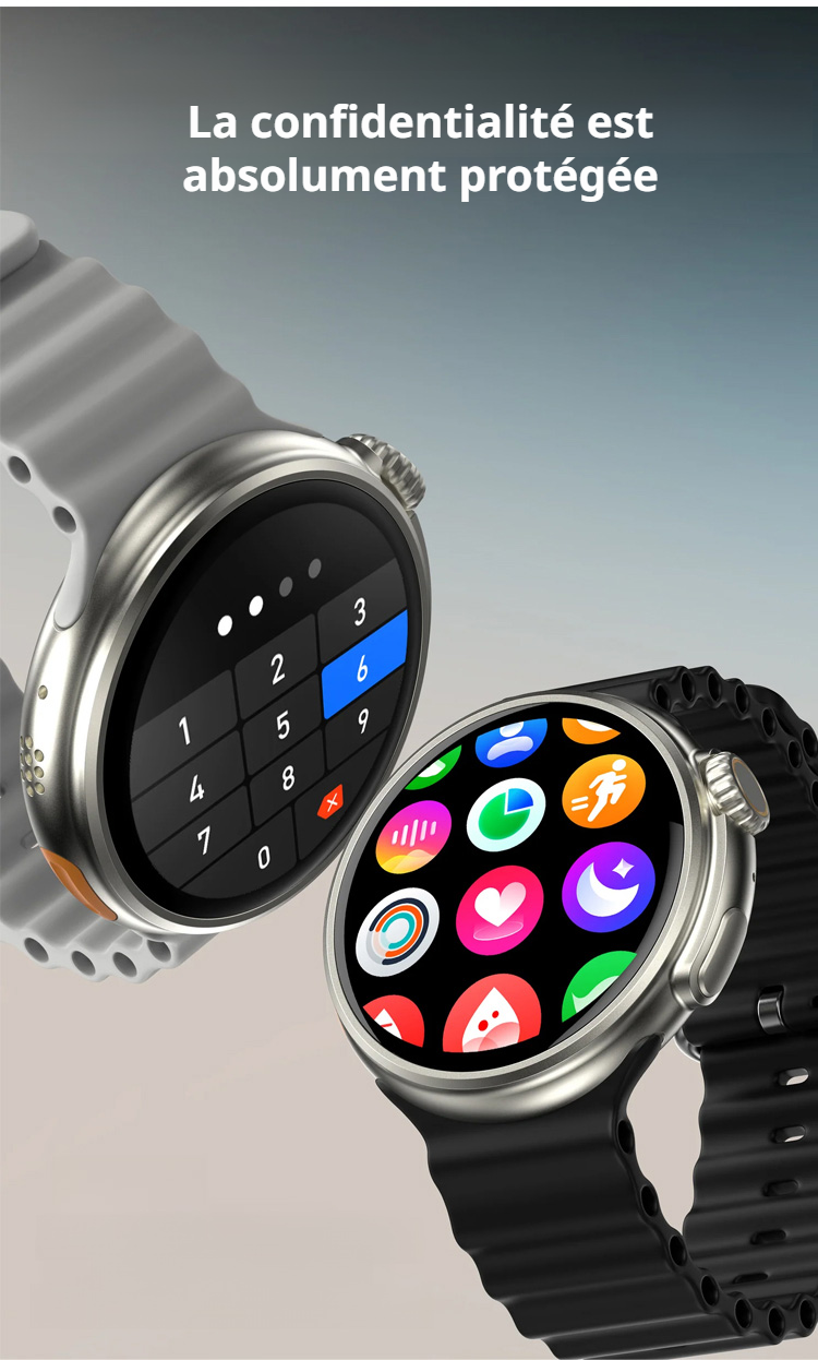 ● Montre intelligente à écran rond offrant une expérience visuelle immersive et élégante pour accompagner toutes vos tenues au quotidien. ● Détection avancée des paramètres de santé, incluant le suivi du rythme cardiaque, du sommeil et de l’activité physique en temps réel. ● Notifications intelligentes synchronisées avec votre smartphone pour ne manquer aucun appel, message ou événement important, où que vous soyez. ● Autonomie longue durée grâce à une batterie performante, vous permettant de profiter pleinement de toutes ses fonctionnalités sans recharge fréquente. ● Interface intuitive et personnalisable, facilitant l’accès rapide à vos applications préférées et à vos données personnelles.