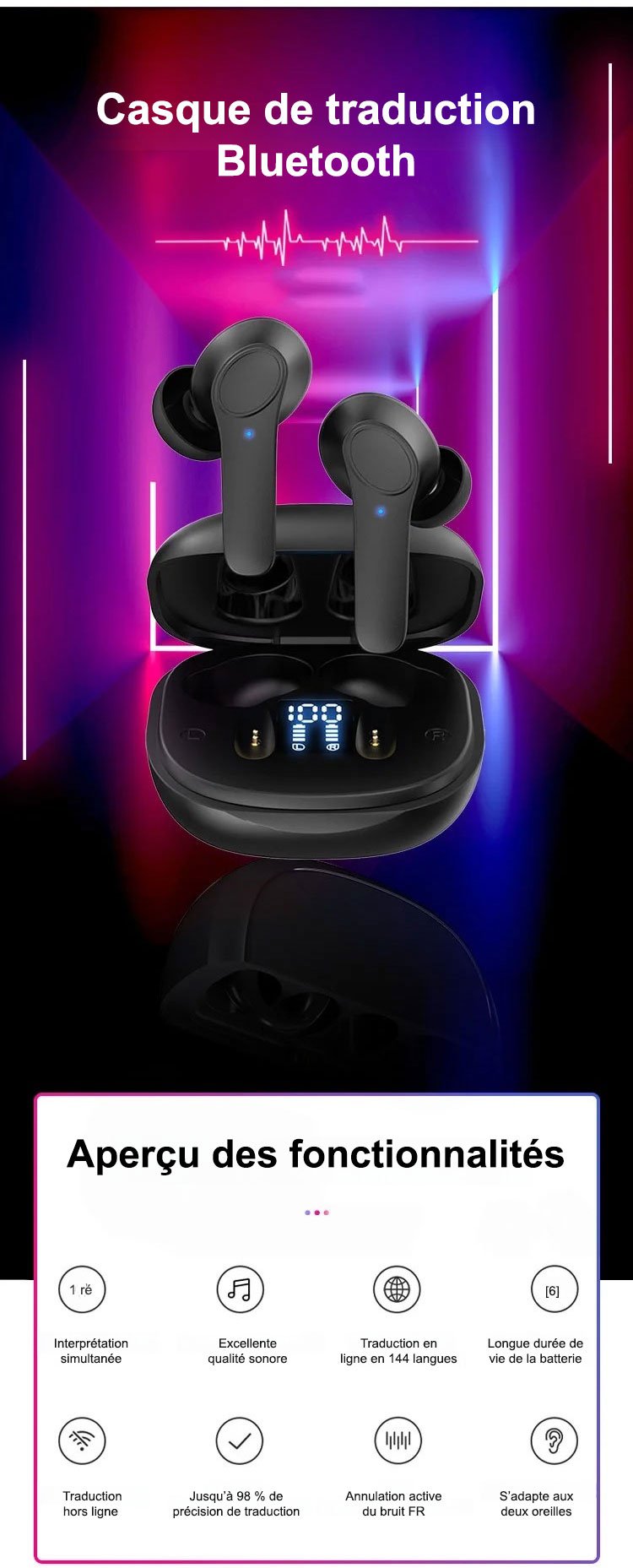Casque de traduction en temps réel Bluetooth Smart Voice